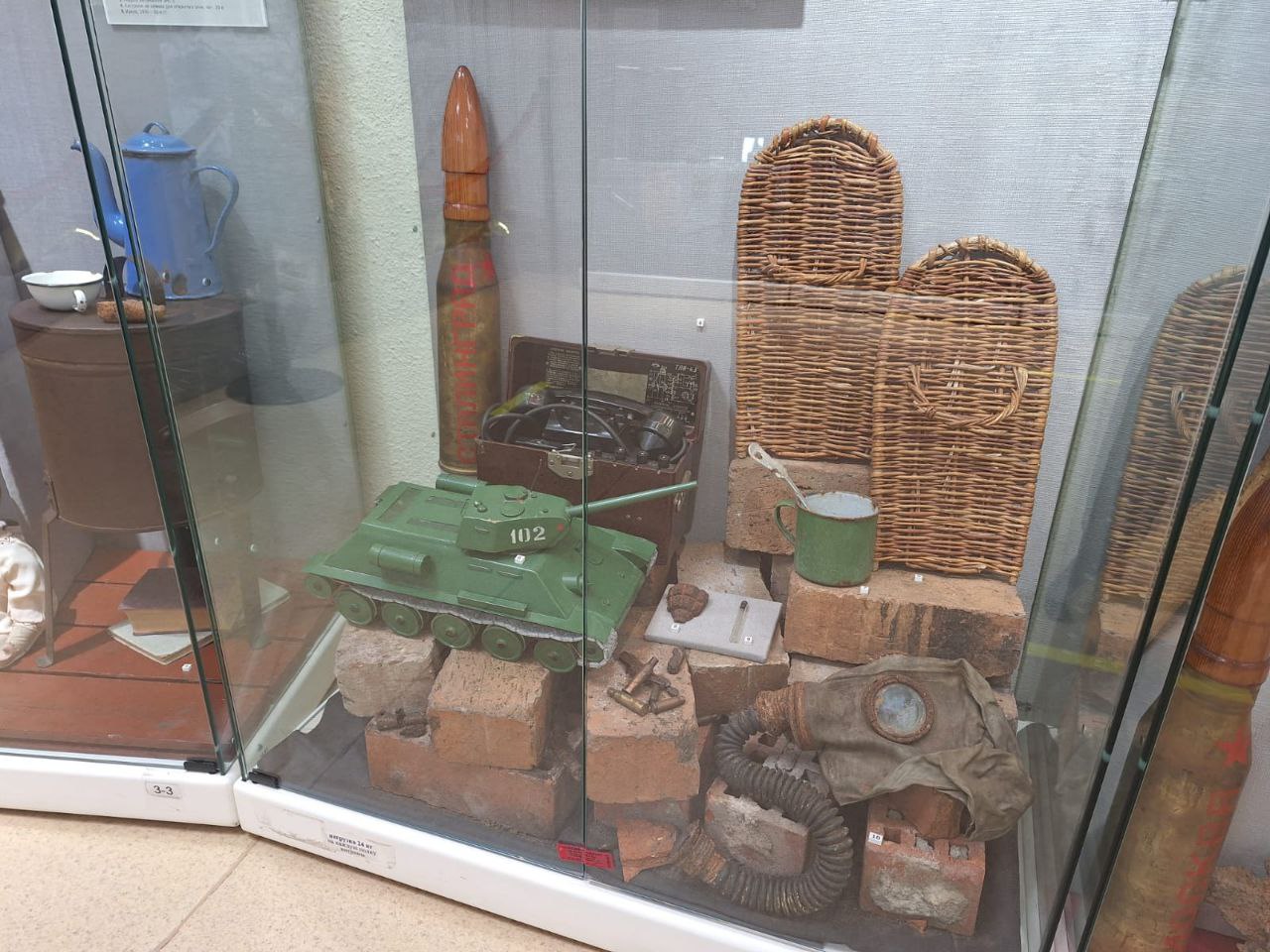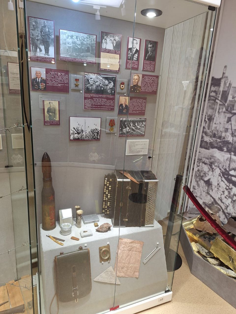 В экспозиции представлены материальные свидетельства эпохи: оригинальные фотографии и документы военного времени, образцы стрелкового оружия и элементы обмундирования солдат, макеты боевой техники периода 1941-1945 гг., а также другие подлинные артефакты из фондов музея.