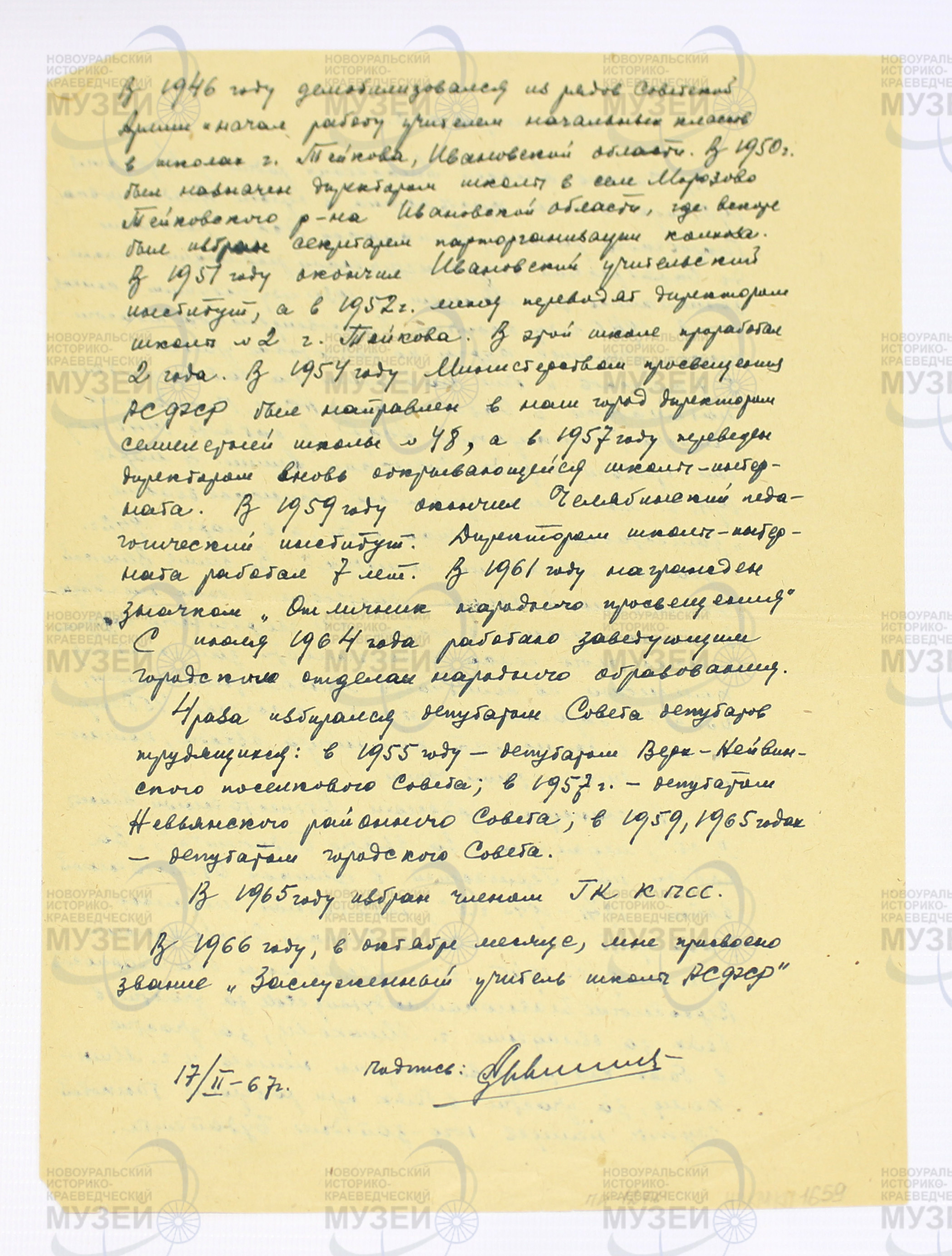 Автобиография Сивачева А.А., 17.02.1967 г.